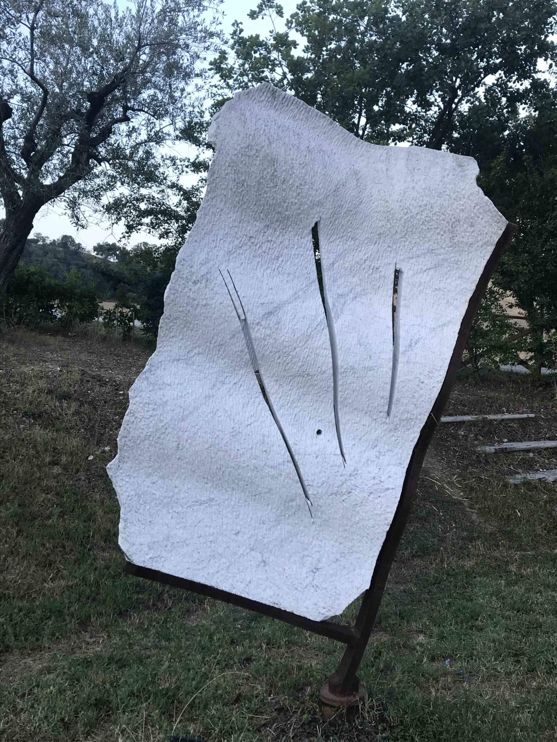 - Le ali di Dedalo, 2019 marmo bianco di Carrara (5x3x2m)